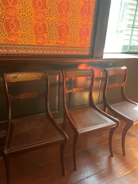 This report is older and as I tour the Wythe House again, I’ll be asking questions to see if any original furnishings have been added. One thing that’s super-cool, it is the MOST original structure we have of the 89 originals. Those are the original bricks on the exterior and the actual handrail everyone from Jefferson to Lafayette used.