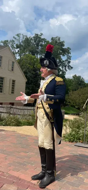 Mark Schneider (pictured below) is a U.S. Army veteran and CW employee for over 25 years. He portrays the Marquis de Lafayette and has made it clear he doesn’t just rely on Lafayette’s words; he reads letters from others about Lafayette.