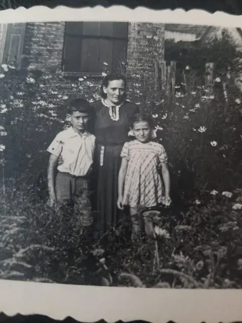 My mom with her mother and brother, late 1940s, Europe[?].