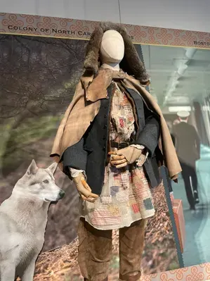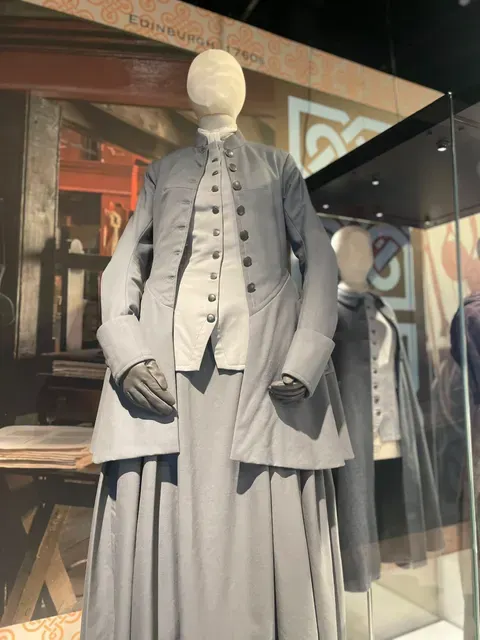 Many of you may know that the Outlander series spans from the Scottish Highlands to colonial North Carolina. Looking at this exhibit in context, the American Revolution Museum at Yorktown showcases, as they put it, "the research and rigor of historic clothing design."